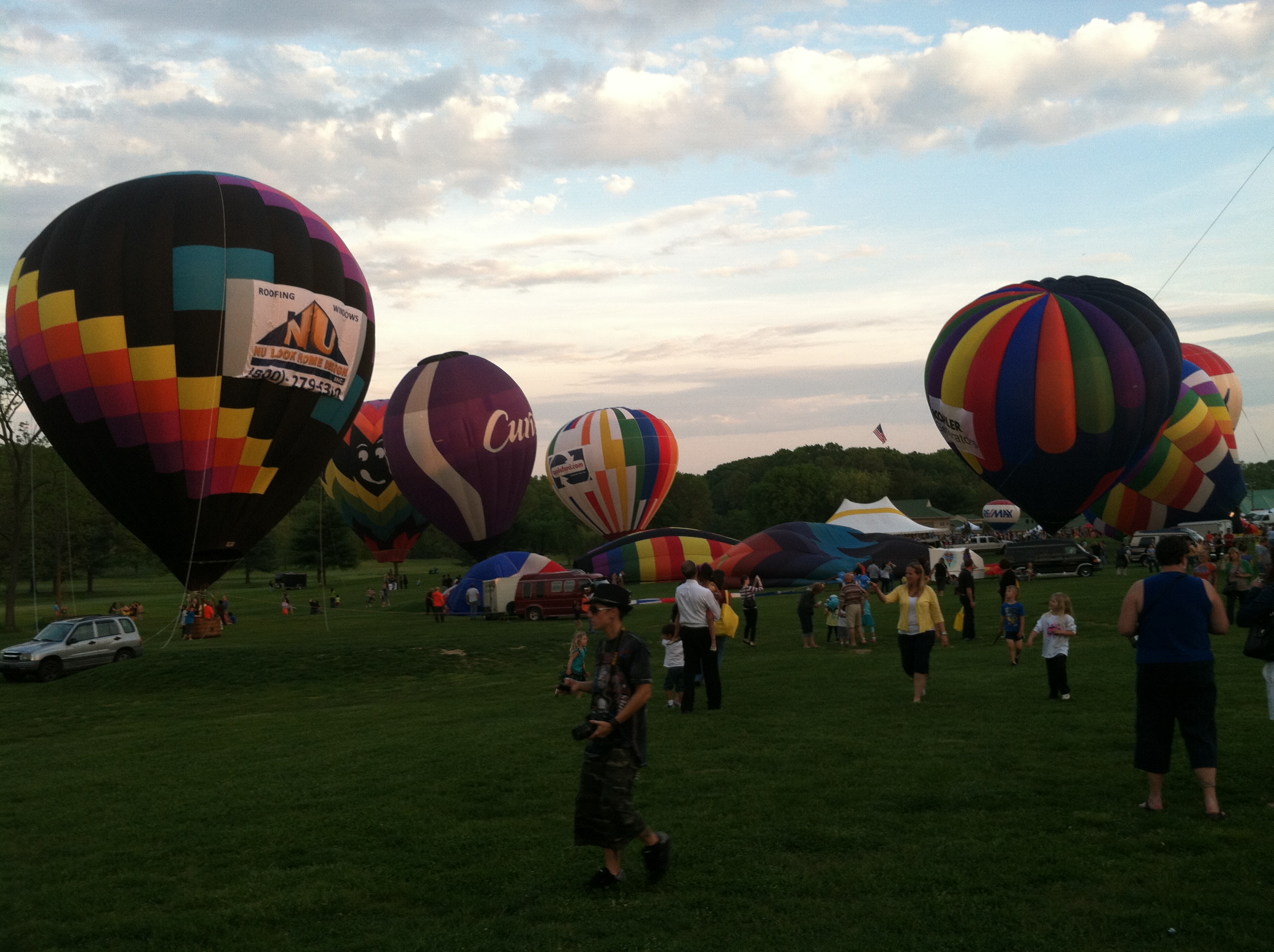 The Preakness Celebration Balloon Festival that I went to continues the hot air balloon glow tradition by presenting two balloon glows. Up to twenty hot air balloons participated in this balloon glow event at Turf Valley. (Actually we got no glow going on, but who cares!!)