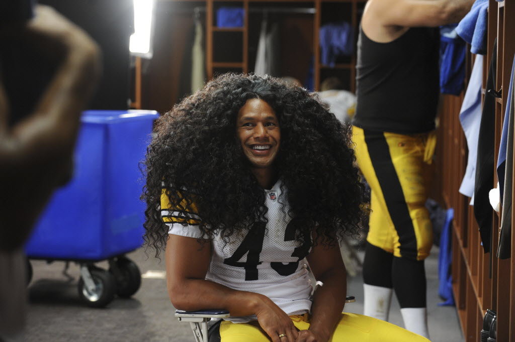 So, Pittsburgh Steelers it is. He declared, like all good sports fans, that he needed a top to show his support, and he chose a #43 jersey (listen to me using the lingo!) for Troy Polamalu – he pretty much liked the name of the dude.