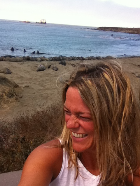 ‘Ya gotta see the elephant seals when ya stop off on ya drive along the coast. They’re awesome’ says an American lady to us.
