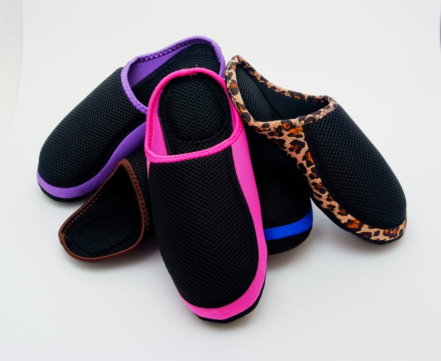 Cushies, the newest indoor footwear creation from the Nufoot Company, are a comfortably padded and soft slipper-shaped footwear, but which is also nearly weightless, amazingly flexible and has a breathable mesh top. They are also antimicrobial and both water and skid resistant. Its sturdy neoprene construction makes it durable and comfortable on any indoor surface. Comes in a variety of colors in sizes for both men and women. $19.99.
